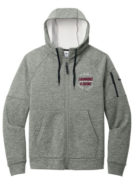This full-zip hoodie with a zippered left arm pocket brings the heat to your workout with Therma-FIT fabric. Therma-FIT helps manage your body’s natural heat to keep warm in cold-weather conditions. The design includes a three-panel hood with black drawcords, a dyed-to-match zipper and front pockets. Self-fabric cuffs and hem. A contrast Swoosh logo is embroidered on left sleeve. A contrast Therma-FIT logo is embroidered on back hem. Made of 7.4-ounce polyester Therma-FIT fabric with at least 50% recycled content.